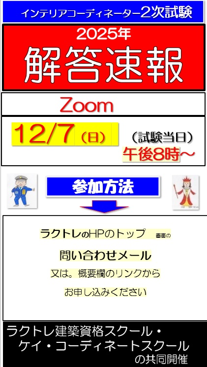 2025年のインテリアコーディネーター2次試験 解答速報の公開ライブを開催致します。